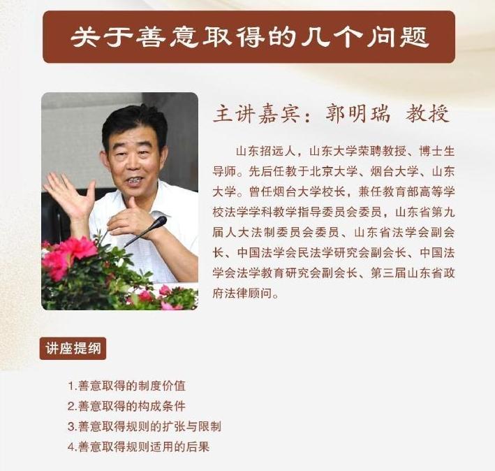 石大人文講壇之“關(guān)于善意取得的幾個(gè)問(wèn)題”4月15日開(kāi)講