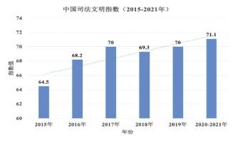1.2020-2021年31個(gè)省/自治區(qū)/直轄市的司法文明平均得分為71.1分(滿分為100分),與2019年平均得分70分相比,提高1.1分。