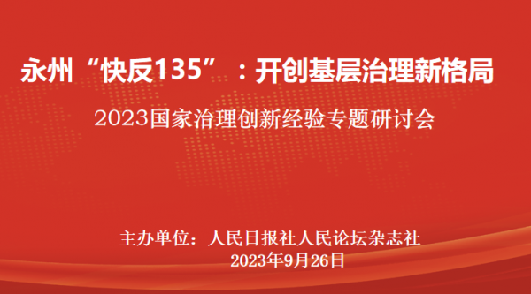 9月26日,“永州‘快反135’:開創(chuàng)基層治理新格局——2023國(guó)家治理創(chuàng)新經(jīng)驗(yàn)專題研討會(huì)”在北京人民日?qǐng)?bào)社新媒體大廈舉行。