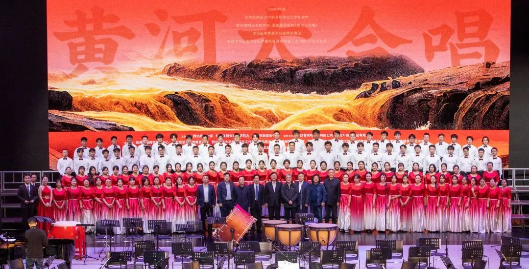 本次《黃河大合唱》大型專場音樂會以“共建紅色平臺、共育紅色人才、共譜紅色未來”為主題,由西北政法大學、陜西省延安精神研究會、延安市融媒體中心共同主辦,歐普照明股份有限公司、金紅葉紙業(yè)集團有限公司特別支持,西北政法大學200余名師生、校友共同參演,吸引了1000多名觀眾到場觀看。