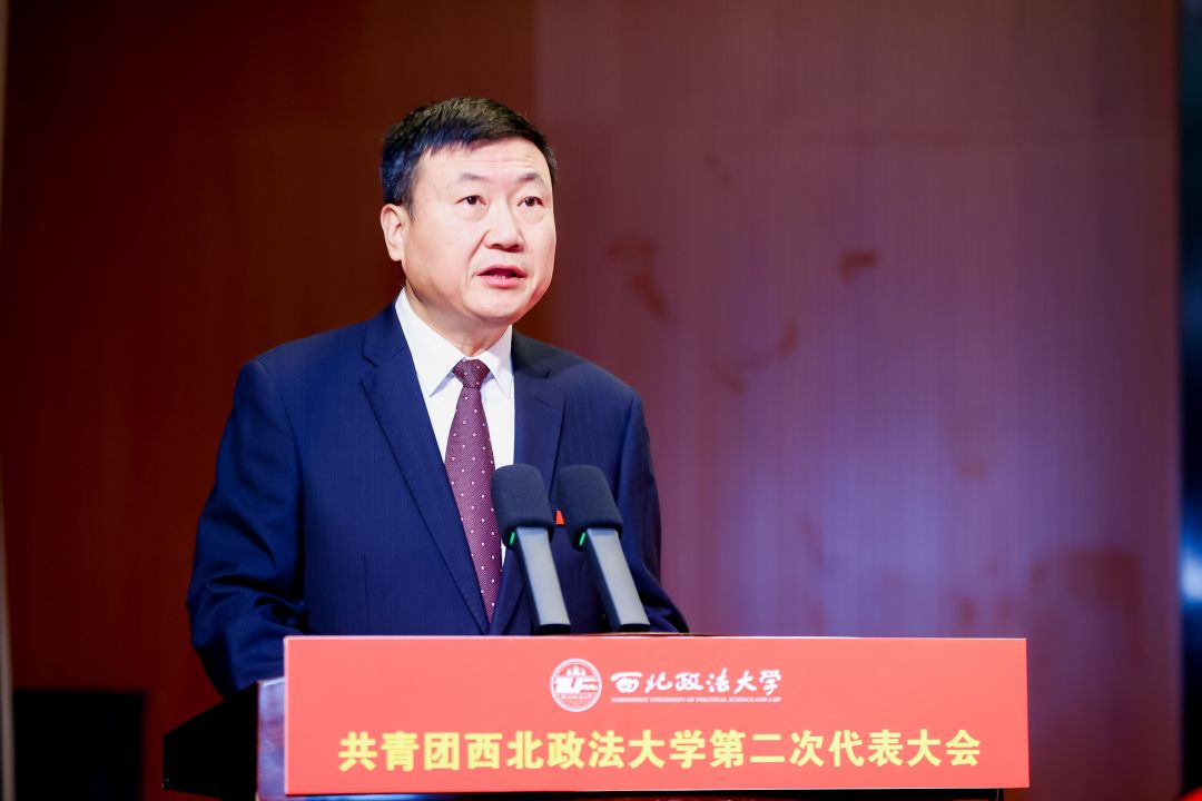 郭武軍代表學(xué)校黨委向大會(huì)的召開(kāi)表示熱烈祝賀,向長(zhǎng)期以來(lái)關(guān)心和支持學(xué)校共青團(tuán)工作的共青團(tuán)陜西省委、省教育團(tuán)工委以及兄弟院校表示感謝,并充分肯定了學(xué)校各級(jí)團(tuán)組織團(tuán)結(jié)帶領(lǐng)廣大團(tuán)員青年取得的成績(jī)和貢獻(xiàn)。他強(qiáng)調(diào)西法大青年要堅(jiān)定理想信念,樹(shù)立報(bào)國(guó)之志,以昂揚(yáng)之姿馳騁青春賽道;要傳承紅色基因,涵養(yǎng)浩然之氣,以擔(dān)當(dāng)之勇砥礪前行之路;要勇立時(shí)代前沿,提升創(chuàng)新之能,以進(jìn)取之心探索未知領(lǐng)域;要時(shí)刻牢記以人民為中心,踐行法治精神,在中國(guó)式現(xiàn)代化建設(shè)中挺膺擔(dān)當(dāng)。