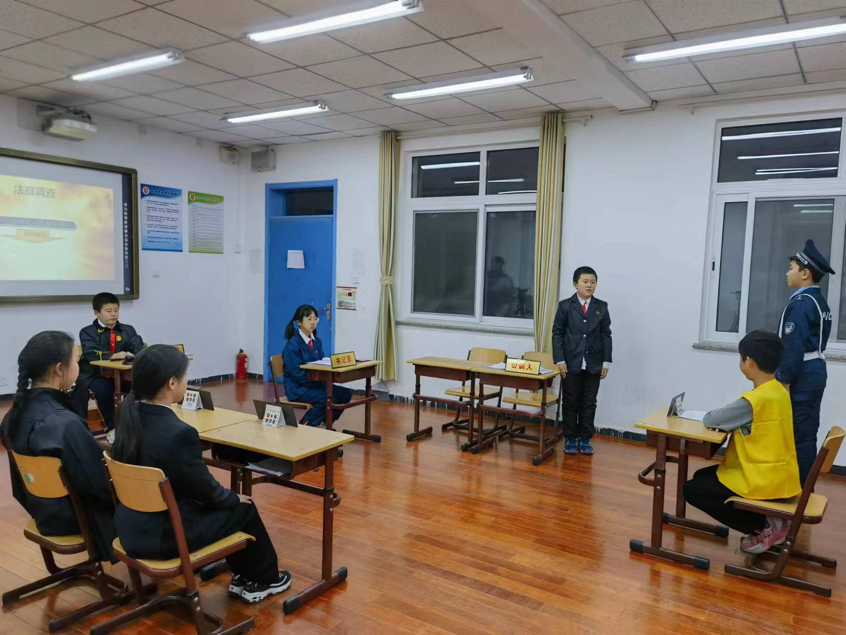 高家園小學學生以情景表演的形式對一起“網(wǎng)絡詐騙案”進行“審理”。