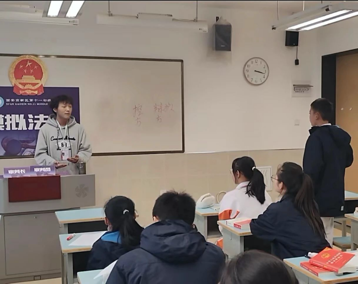 在西安市高新十一初級中學,法律服務中心志愿者對八年級同學進行了基本法律知識宣講和模擬法庭指導活動。在交流環(huán)節(jié),針對同學們自主提問的正當防衛(wèi)界定、公海、訴訟流程等基礎法律知識,志愿者們進行了準確解答。
