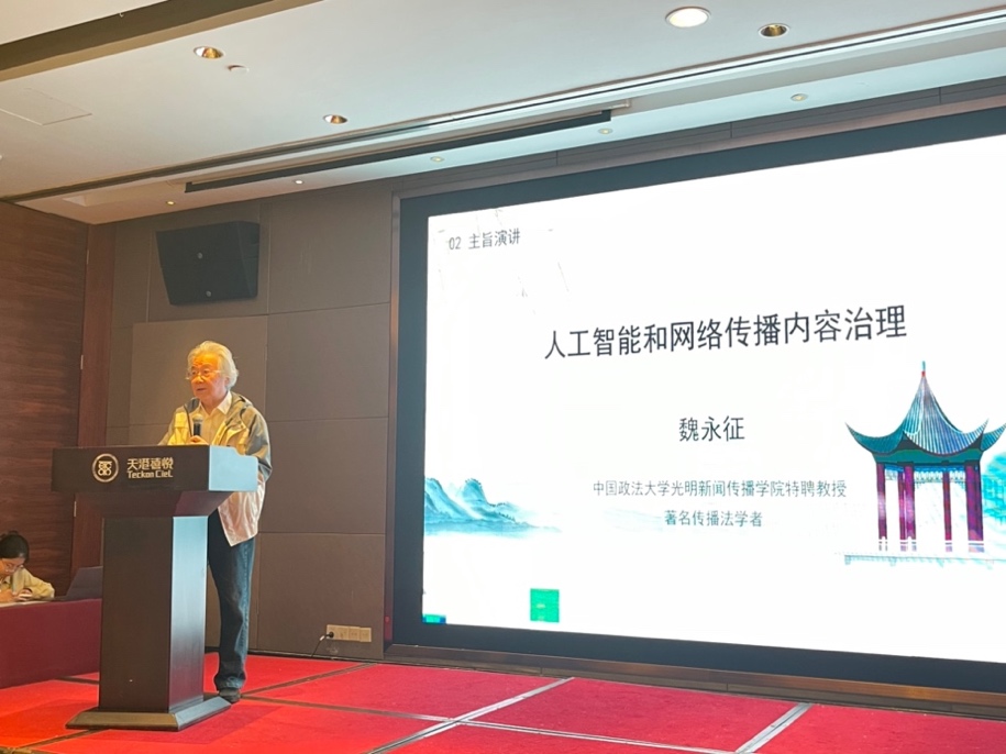 主旨演講環(huán)節(jié)由華東政法大學(xué)傳播學(xué)院彭桂兵教授主持,著名傳播法學(xué)者、中國政法大學(xué)新聞傳播學(xué)院特聘教授魏永征,北京外國語大學(xué)新聞傳播學(xué)院教授展江,南京師范大學(xué)新聞傳播學(xué)院二級教授、中國新聞史學(xué)會媒介法規(guī)與倫理專業(yè)委員會理事長顧理平,暨南大學(xué)新聞與傳播學(xué)院二級教授林愛珺分別以“人工智能和網(wǎng)絡(luò)傳播內(nèi)容治理”“英烈保護(hù):執(zhí)法與司法初窺”“從封閉到開放:隱私內(nèi)涵的現(xiàn)代性演進(jìn)”“萬物智聯(lián)的云生存邏輯”為題做了主旨演講,就傳媒法治、文化法治領(lǐng)域的重大問題展開研討,共同探討了傳媒法治、文化法治領(lǐng)域的理論與實踐問題。