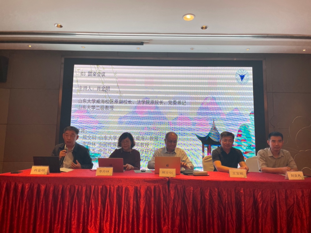 文化法治圓桌會議環(huán)節(jié)由肖金明教授主持,長期關(guān)注文化法學(xué)的著名公法學(xué)者、山東大學(xué)法學(xué)院(威海)熊文釗教授,中國傳媒大學(xué)文化產(chǎn)業(yè)管理學(xué)院李丹林教授,中國政法大學(xué)比較法學(xué)研究院劉文杰教授,中央廣播電視總臺《今日說法》欄目制片人王寶卿共四位專家學(xué)者分別以文化與法治為主題,探討了文化法治的思想融合及其學(xué)理性闡釋,對文化法學(xué)體系的建構(gòu)進(jìn)行了研討。