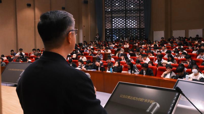 4月10日,一場關(guān)于語言藝術(shù)的精彩講座在北京化工大學(xué)昌平校區(qū)開講。國培源老師以《談青年人語言藝術(shù)之美》為題,為現(xiàn)場師生帶來了一場充滿智慧與幽默的表達(dá)盛宴。從“社恐”到“社?!?,從“不敢開口”到“侃侃而談”,北京廣播電視臺主持人、評論員、主任播音員國培源老師用幾個實用技巧,揭示了當(dāng)眾表達(dá)的核心奧秘——“語言是最厲害的武器”。